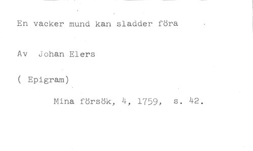 En vacker mund kan sladder föra //// Av Johan Elers //// ( Epigram) //// Mina försök, 4, 1759, s. 42.
