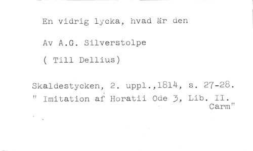 En vidrig lycka, hvad är den //// Av A.G. Silverstolpe ( Till Dellius) //// Skaldestycken, 2. uppl.,1814, s. 27-28. //// " Imitation af Horatii Ode 3, Lib. II. //// Carm"
