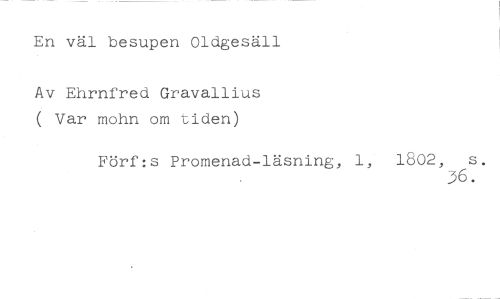 En väl besupen Oldgesäll //// Av Ehrnfred Gravallius ( Var mohn om tiden) //// Förf:s Promenad-läsning, 1802, s. //// 36.