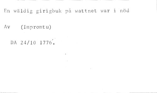 En wäldig girigbuk på vattnet war i nöd //// Av (Impromtu) //// DA 24/10 1776.
