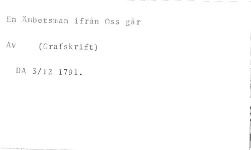 En Ämbetsman ifrån Oss går //// Av (Grafskrift) //// DA 3/12 1791.