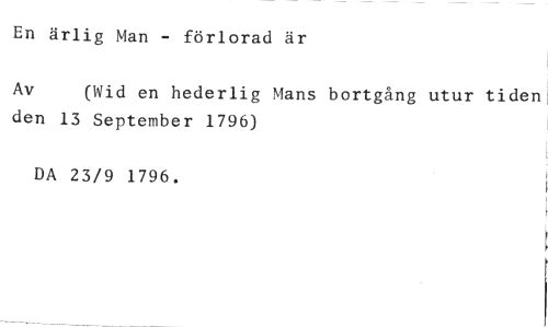 En ärlig Man - förlorad är //// Av (Wid en hederlig Mans bortgång utur tiden, //// den 13 September 1796) //// DA 23/9 1796.