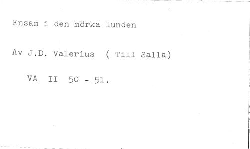 Ensam i den mörka lunden //// Av J.D. Valerius ( Till Salla) //// VA II 50 - 51. 1