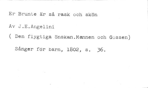 Er Brunte är så rask och skön //// Av J.E.Angelini //// ( Den flygtiga önskan.Mannen och Gossen) //// Sånger för barn, 1802, s. 36.