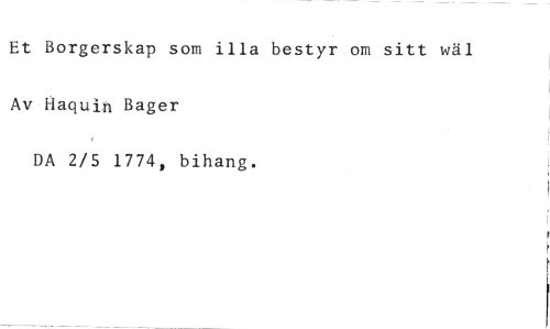 Et Borgerskap som illa bestyr om sitt wäl //// Av Haquin Bager //// DA 2/5 1774, bihang.