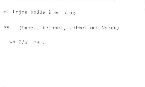 Et Lejon bodde i en skog //// (Fabel. Lejonet, Räfwen och Myran) //// DA 2/5 1791.