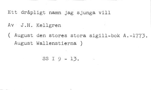 Ett dråpligt namn jag sjunga vill Av J.H. Kellgren //// ( August den stores stora sigill-bok A.-1773. August Wallenstierna ) //// SS I 9 - 13.
