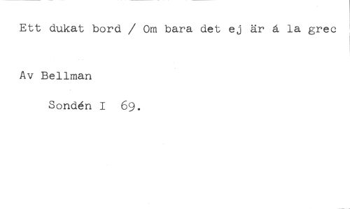 Ett dukat bord / Om bara det ej är å la grec //// Av Bellman //// Sondn I 69.