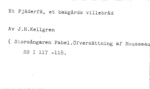 Et Fjäderfä, et bakgårds villebråd Av J.H.Kellgren //// ( Storsångaren Fabel.Öfversättning af Rousseau SS I 117 -118.