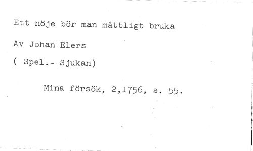 Ett nöje bör man måttligt bruka //// Av Johan Elers //// ( Spel.- Sjukan) //// Mina försök, 2,1756, s. 55.