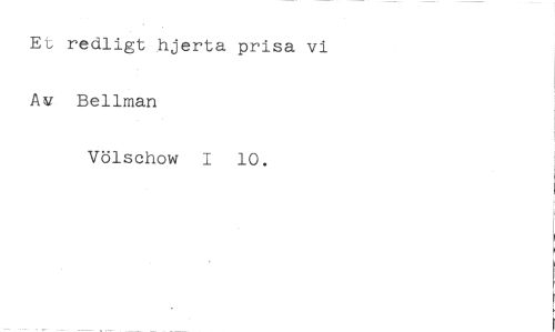 EL redligt hjerta prisa vi Av Bellman //// Völschow I 10.