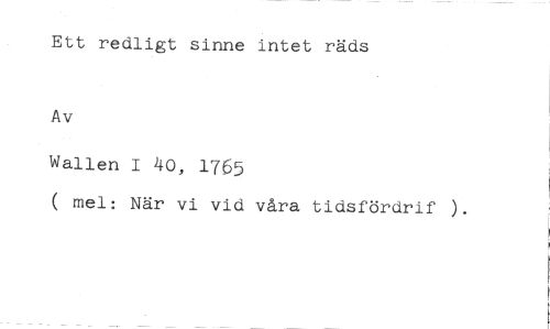 Ett redligt sinne intet räds //// Av //// Wallen I 40, 1765 //// ( mel: När vi vid våra tidsfördrif ).