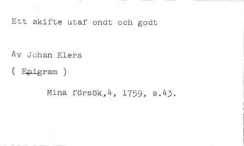 Ett skifte utaf ondt och godt //// Av Johan Elers ( Epigram ) //// Mina försök,4, 1759, s.43.
