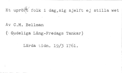 Et uprör folk i dag,sig sjelft ej stilla wet //// Av C.M. Bellman //// ( Gudeliga Lång-Fredags Tankar) //// Lärda tidn. 19/3 1761.