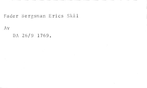 Fader Bergsman Erics Skål //// Av //// DA 26/9 1769.
