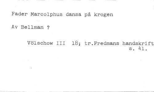 Fader Marcolphus dansa på krogen Av Bellman ? //// Völschow III 18; tr.Fredmans handskrift //// s. 41.