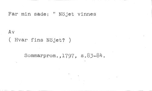 Far min sade: " Nöjet vinnes //// Av //// ( Hvar fins Nöjet? ) //// Sommarprom.,1797, s.83-84.