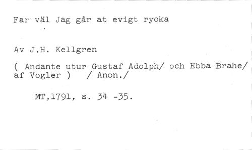Far väl Jag går at evigt rycka Av J.H. Kellgren //// ( Andante utur Gustaf Adolph/ och Ebba Brahe //// /af Vogler ) / Anon. //// /MT,1791, s. 34 -35.