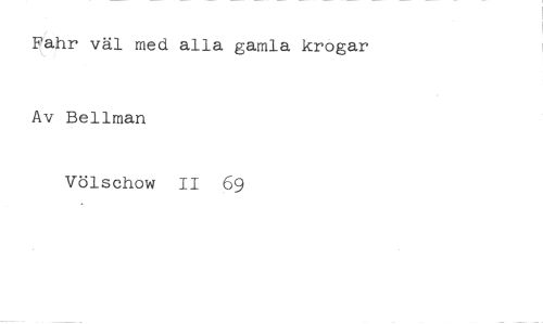 Fahr väl med alla gamla krogar //// Av Bellman //// Völschow II 69
