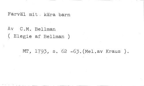 Farväl mit, kära barn //// Av C.M. Bellman //// ( Elegie af Bellman ) //// MT, 1793, s. 62 -63.(Mel.av Kraus ).