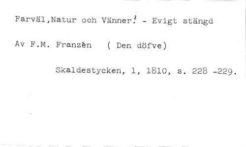 Farväl,Natur och Vänner! - Evigt stängd //// Av F.M. Franzén ( Den döfve) //// Skaldestycken, 1, 1810, s. 228 -229.