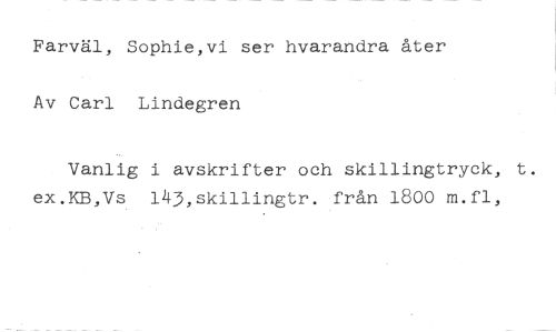 Farväl, Sophie,vi ser hvarandra åter Av Carl Lindegren //// Vanlig i avskrifter och skillingtryck, t. ex.KB,Vs 143,skillingtr. från 1800 m.fl,