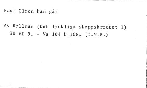 Fast Cleon han går //// Av Bellman (Det lyckliga skeppsbrottet I) SU VI 9. - Vs 104 b 168. (C.M.B.)