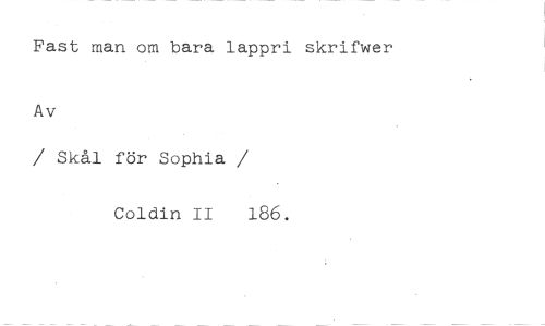 Fast man om bara lappri skrifwer //// Av //// / Skål för Sophia //// /Coldin II 186.