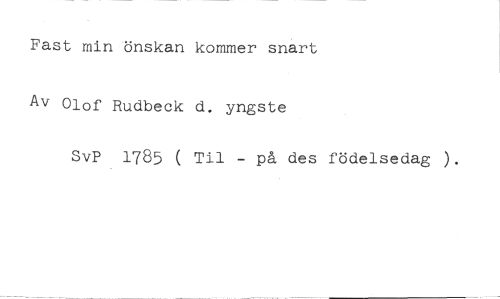 Fast min -önskan kommer snart //// Av Olof Rudbeck d. yngste //// SvP 1785 ( Til - på des födelsedag ).