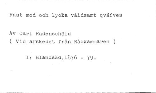 Fast mod och lycka våldsamt qväfves //// Av Carl Rudenschöld //// ( Vid afskedet från Rådkammaren ) //// 1: Blandsäd,1676 - 79.