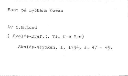 Fast på Lyckans Ocean //// Av O.B.Lund //// ( Skalde-Bref,3. Til C-e M-e) //// Skalde-stycken, 1, 1794, s. 47 - 49.
