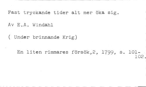 Fast tryckande tider alt mer öka sig. Av E.A. Windahl //// ( Under brinnande Krig) //// En liten rimmares försök,2, 1799, s. 101- //// 102.