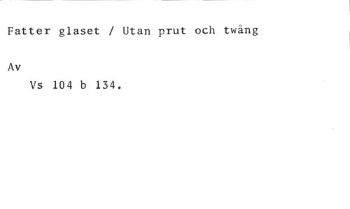 Fatter glaset / Utan prut och twång //// Av //// Vs 104 b 134.