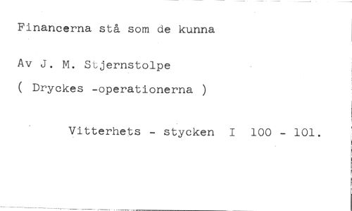 Financerna stå som de kunna //// Av J. M. Stjernstolpe //// ( Dryckes -operationerna ) //// Vitterhets - stycken I 100 - 101.