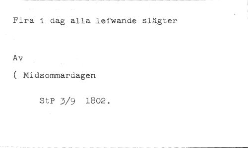 Fira i dag alla lefwande slägter //// Av //// ( Midsommardagen //// StP 3/9 1802.