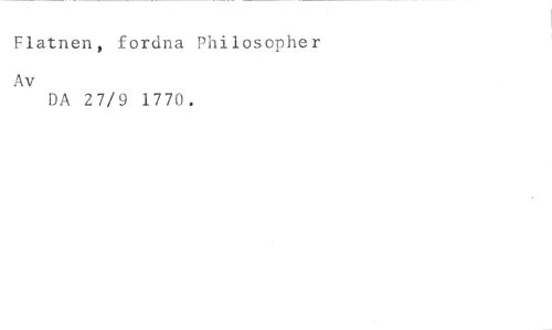 Flatnen, fordna Philosopher //// Av //// DA 27/9 1770.