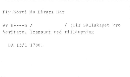 Fly bort! du Dårars Här //// Av K----n / / (Til Sällskapet Pro //// Veritate. Transumt med tillämpning //// DA 13/1 1780.