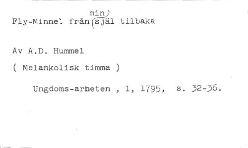 min //// Fly-Minne: från själ tilbaka //// Av A.D. Hummel //// ( Melankolisk timma ) //// Ungdoms-arbeten , 1, 1795, s. 32-36.
