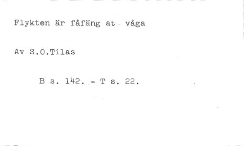 Flykten är fåfäng at våga Av S.O.Tilas //// B s. 142. T s. 22.