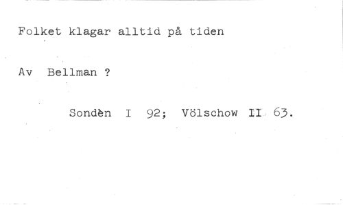 Folket klagar alltid på tiden Av Bellman ? //// Sondn I 92; Völschow IL, 63.