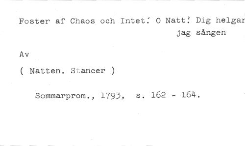 Foster af Chaos och Intet: 0 Natt! Dig helgar //// jag sången //// Av //// ( Natten. Stancer ) //// Sommarprom., 1793, s. 162 - 164.