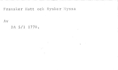 Fransker Hatt och Rysker Myssa //// Av //// DA 5/1 1770.