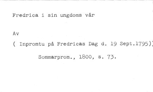 Fredrica i sin ungdoms vår //// Av //// ( Inpromtu på Fredricas Dag d. 19 Sept.1795): //// Sommarprom., 1800, s. 73.