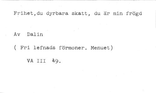 Frihet,du dyrbara skatt, du är min frögd //// Av Dalin //// ( Fri lefnads förmoner. Menuet) VA III 49.