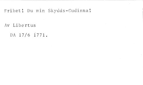 Frihet! Du min Skydds-Gudinna! //// Av Libertus //// DA 17/6 1771.