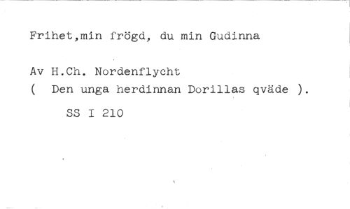 Frihet,min frögd, du min Gudinna //// Av H.Ch. Nordenflycht //// ( Den unga herdinnan Dorillas qväde //// SS 1 210