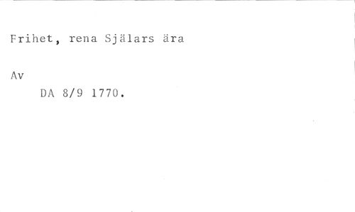 Frihet, rena Själars ära //// Av //// DA 8/9 1770.