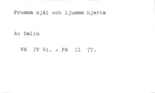 Fromma själ och ljumma hjerta //// Av Dalin //// VA IV kl. - PA II 77.
