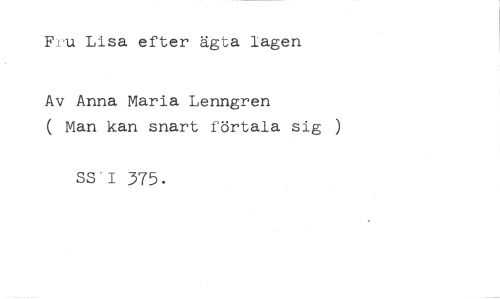 Fru Lisa efter ägta lagen //// Av Anna Maria Lenngren //// ( Man kan snart förtala sig ) //// SS I 375.