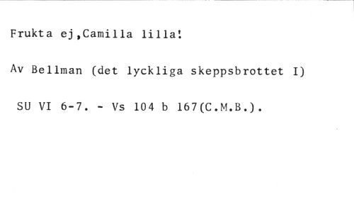 Frukta ej,Camilla lilla! //// Av Bellman (det lyckliga skeppsbrottet I) SU VI 6-7. - Vs 104 b 167(C.M.B.).